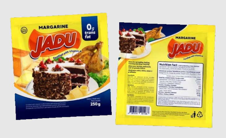 The general purpose of our JADU margarine is baking and creaming margarine specially processed from refined, bleached, and deodorized palm oil. It is ideal for spreading, baking, roasting and deep roasting. JADU Margarine has uniform yellowish appearance with bake-stable fruity buttery flavor. It is enriched with Vitamin A which helps optimize eye function.