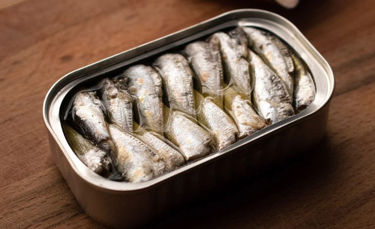 Sardines are small, oily fish with a firm texture and savory flavor. They are silvery in color, with a single short dorsal fin, and no scales on the head. Sardines are 6 to 12 inches long and live in dense schools, feeding on plankton along the coast.